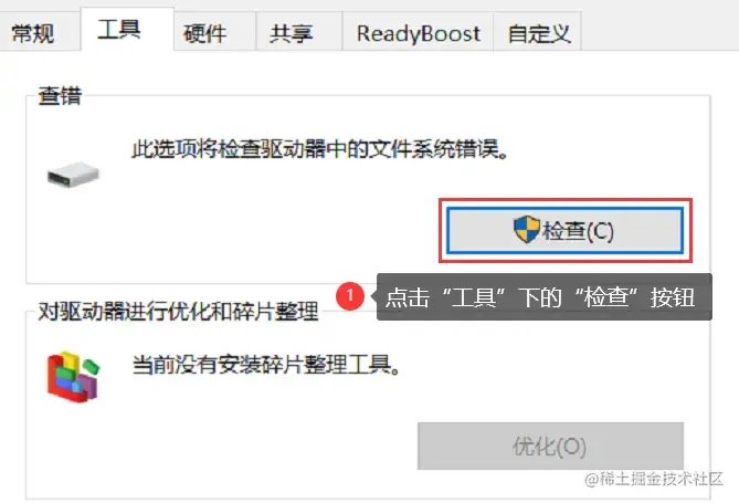 步骤3: 找到 【工具】 ,点击 【检查】 按钮。