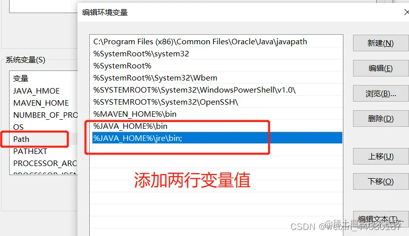 编辑变量Path,添加变量值
