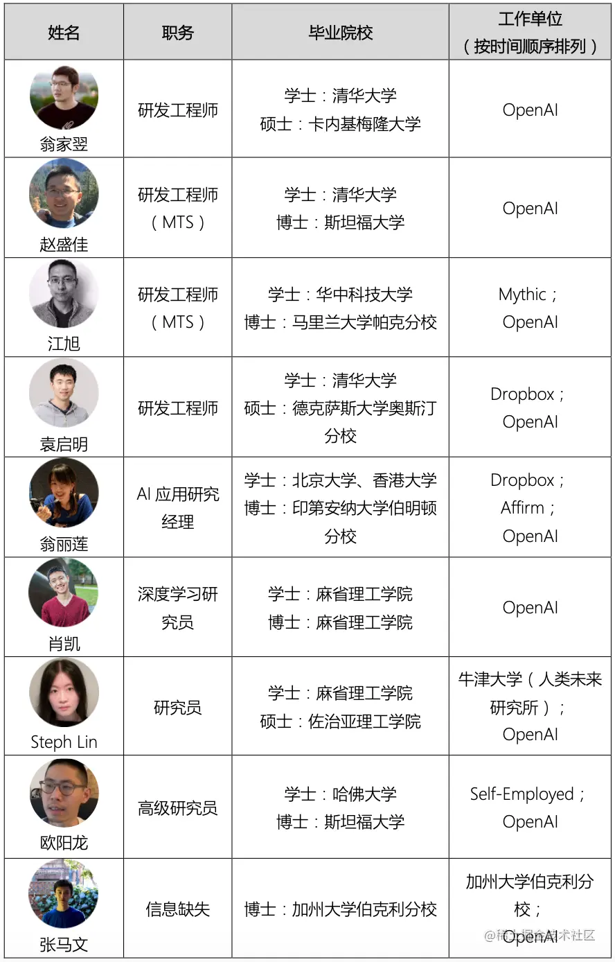 分析发现,该团队成员不再把进入 “大厂” 作为首选,而是更倾向于选择更加创新潜力的创业机构。团队成员大多是从 “大厂” 跳槽,以及作为应届生加入,其次就是从相对 “稳定” 的科研机构和高校教职岗位离职后加入。即使从 ChatGPT 团队离职的 4 位成员,也仍然选择加入创业公司或机构。