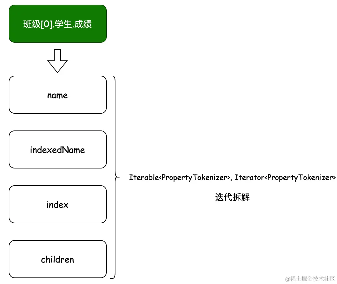 - 场景介绍:PropertyTokenizer 是用于 Mybatis 框架 MetaObject 反射工具包下,用于解析对象关系的迭代操作。这个类在 Mybatis 框架中使用的非常频繁,包括解析数据源配置信息并填充到数据源类上,以及参数的解析、对象的设置都会使用到这个类。