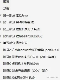 本篇一共分为五个部分:走近 Java、自动内存管理、虚拟机执行子系统、程序编译与代码优化、高效并发。各个部分之间基本上是互相独立的,没有必然的前后依赖关系,读者可以从任何一个感兴趣的专题开始阅读,但是每个部分各个章节间则有先后顺序。