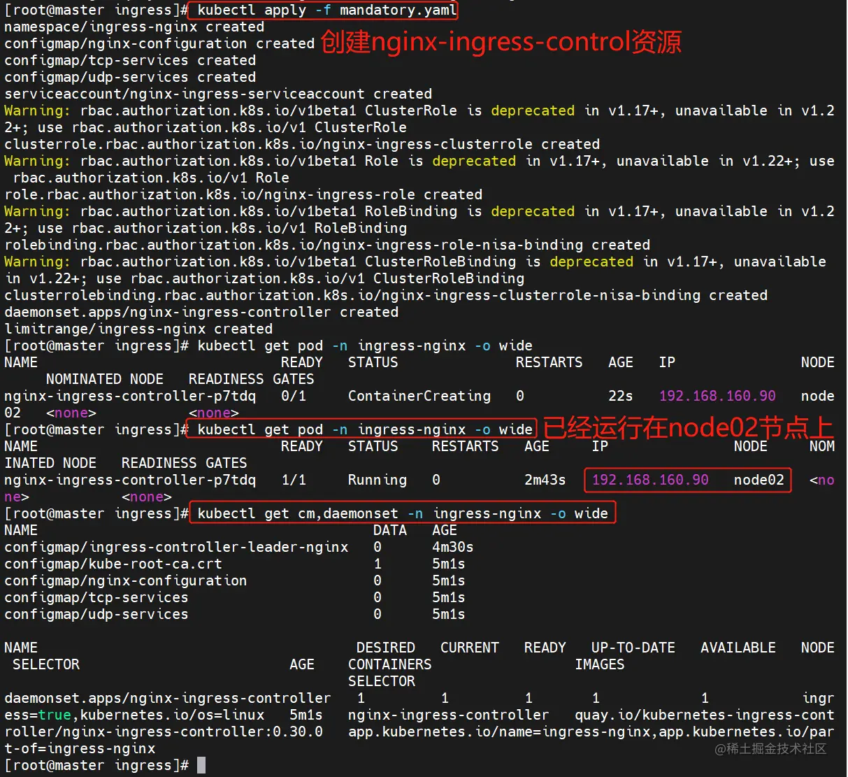 3、指定 nginx-ingress-controller 运行在 node02 节点