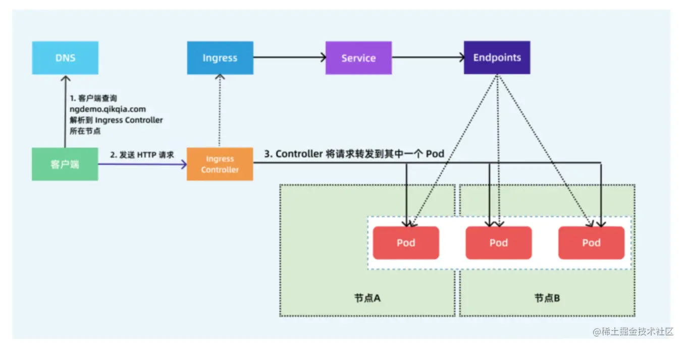 ingress-controller才是负责具体转发的组件,通过各种方式将它暴露在集群入口,外部对集群的请求流量会先到 ingress-controller, 而ingress对象是用来告诉ingress-controller该如何转发请求,比如哪些域名、哪些URL要转发到哪些service等等。