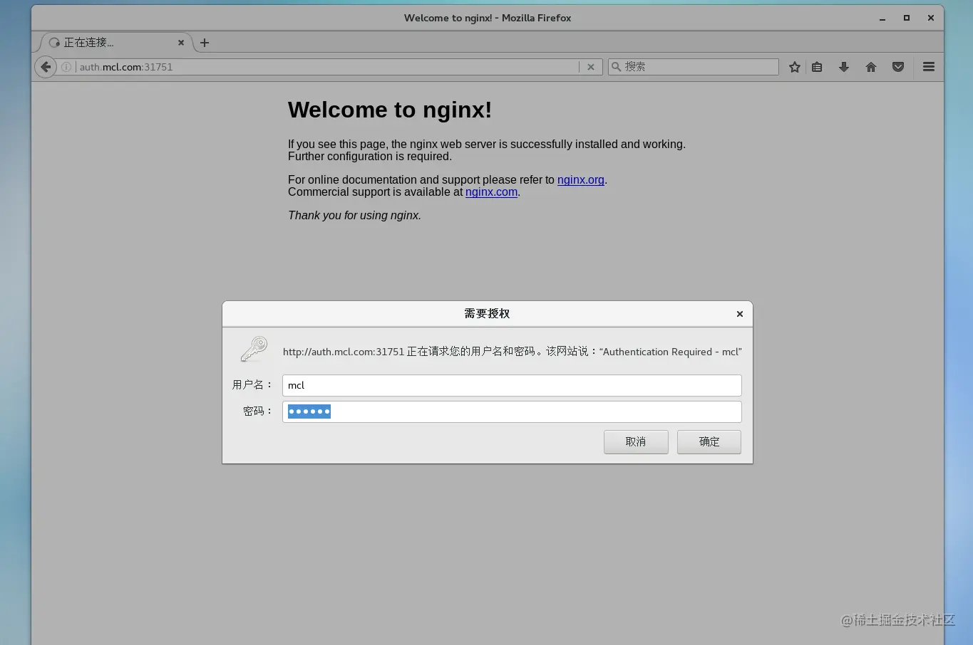 浏览器访问:http://auth.mcl.com:31751