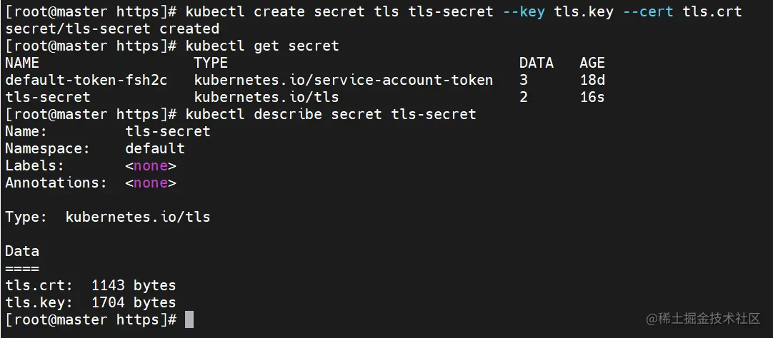 kubectl create secret tls tls-secret --key tls.key --cert tls.crt