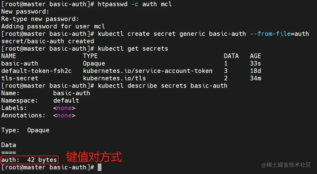 9.1 生成用户密码认证文件,创建 secret 资源进行存储