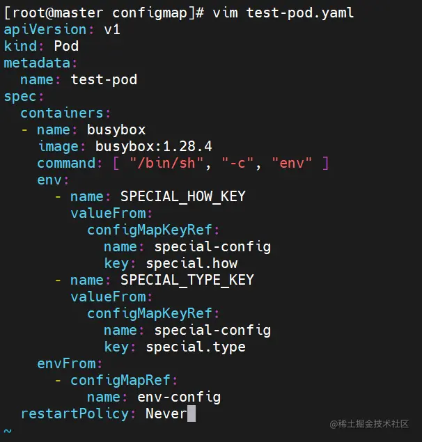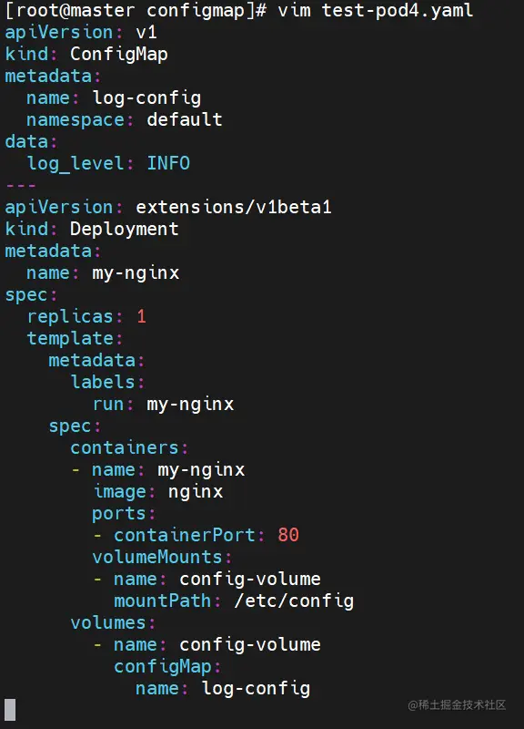 在数据卷里面使用 ConfigMap,就是将文件填入数据卷,在这个文件中,键就是文件名,键值就是文件内容