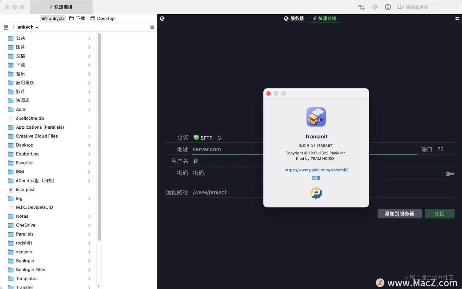 Transmit无论在界面还是用户体验上做的都很好,支持连接历史记录、喜爱列表、双栏浏览、连接为本地磁盘等,除了FTP协议外,还支持SFTP、亚马逊的S3、WebDAV等协议,连接和文件传输速度都很快,非常不错, 是您Mac上首选的 FTP 客户端!