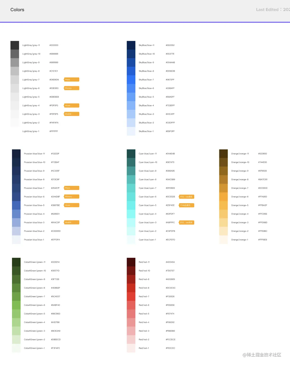 颜色,有一套标准的模版: