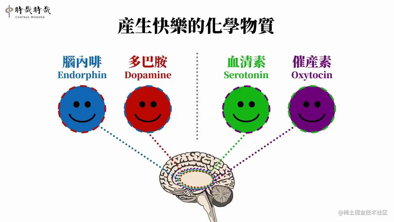 因为我们人类在我们的进化的过程当中,经常需要运动,需要长时间大量的运动。那么这个时候你怎么样去解决运动当中的空虚无疗困乏压力,这些东西,大脑就会大量的分泌各种各样的这个激素,让你能够继续运动下去,尤其是跑下去。