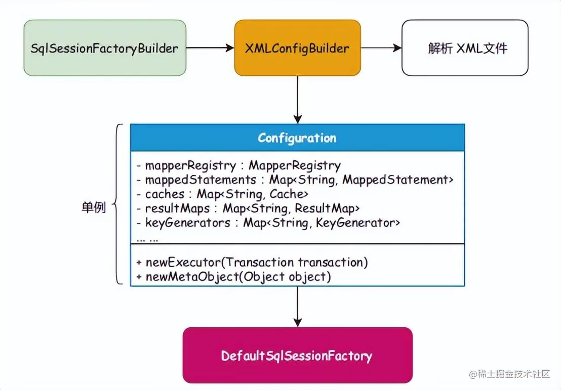 场景介绍: Configuration 是一个大单例,贯穿整个会话周期,所有的配置对象(如映射、缓存、入参、出参、拦截器、注册机和对象工厂等)都在Configuration 配置项中初始化, 并且随着SqlSessionFactoryBuilder 构建阶段完成实例化操作。