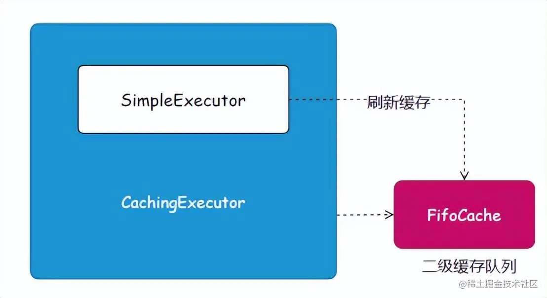 场景介绍: MyBatis 的所有SQL 操作都是经过SqlSession 调用SimpleExecutor 完成的, 而一级缓存的操作也是在简单执行器中处理的。这里的二级缓存因为是基于一级缓存刷新的,所以在实现上,通过创建一个缓存执行器,包装简单执行器的处理逻辑,实现二级缓存操作。这里用到的就是装饰器模式,也叫俄罗斯套娃模式。