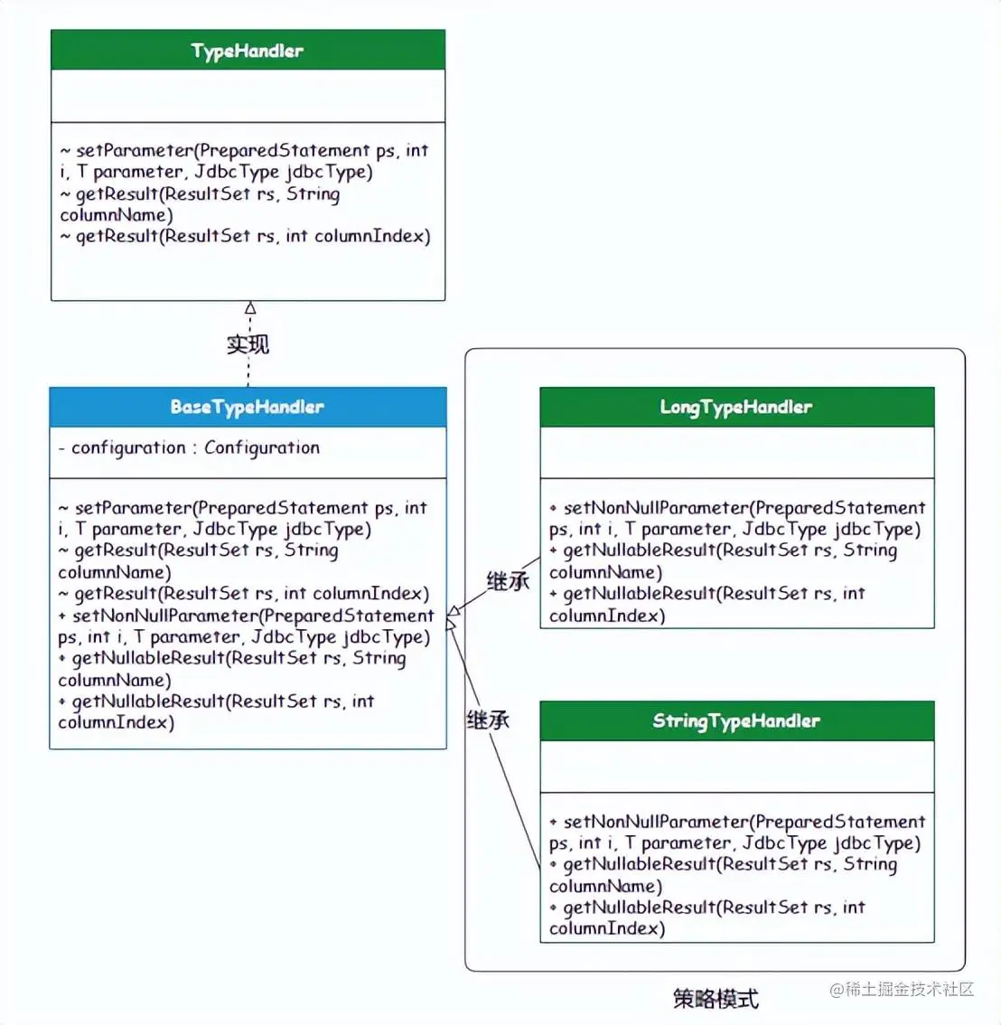 场景介绍: 在MyBatis 处理JDBC 执行后返回的结果时,需要按照不同的类型获取对应的值,这样就可以避免大量的if 判断。所以,这里基于TypeHandler 接口对每个参数类型分别做了自己的策略实现。