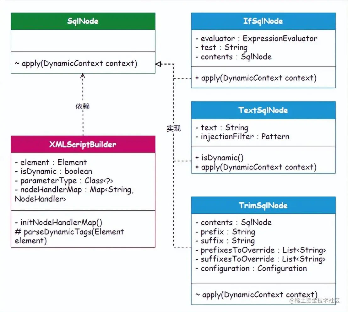 场景介绍: 在MyBatis XML 动态的SQL 配置中,共提供了9 种标签(trim、where、set、foreach、if、choose、when、otherwise 和bind),使用者可以组合出各类场景的SQL 语句。而SqlNode 接口的实现就是每个组合结构中的规则节点,通过规则节点的组装,完成规则树组合模式的使用。