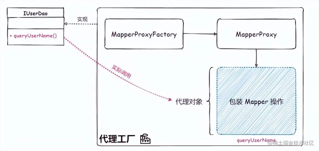 场景介绍: 没有代理模式就不存在各类框架。就像MyBatis 中的MapperProxy 实现类, 代理工厂实现的功能就是完成DAO 接口的具体实现类的方法,配置的任何一个DAO 接口调用的CRUD 方法,都会被MapperProxy 接管,调用到方法执行器等,并返回最终的数据库执行结果。