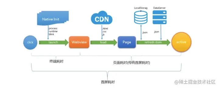 为什么拥有Webview的H5页面打开这么慢,是因为它通常会经历以下几个阶段:
