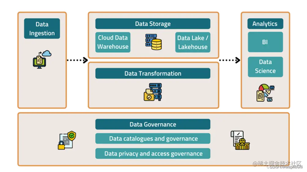 对于开始全新领域的组织来说,这可能非常简单,因为主要的云提供商提供MDS模板(re。AWS湖形成)。但对于拥有现有传统数据堆栈的组织来说,这并不像将所有内容迁移到云那么简单。