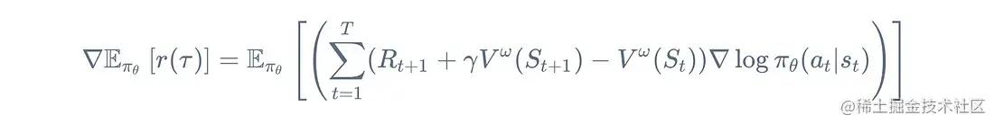 找到一个好的基线本身就是另一个挑战,计算它又是另一个挑战。 相反,让我们也使用参数 ω 来近似计算 V^ω_(s)。 我们使用可学习的 V^ω_(s) 自举梯度的所有算法都被称为 Actor-Critic 算法,因为这个价值函数估计对“演员”(代理人的政策)表现得像一个“批评家”(好的 v/s 坏的值) . 然而这一次,我们必须计算演员和评论家的梯度。