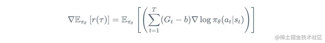 因此,我们改为尝试通过引入另一个称为基线 b 的变量来优化奖励的差异。 为了保持梯度估计无偏,基线独立于策略参数。