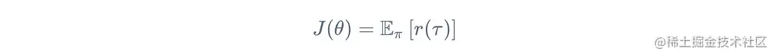 强化学习代理的目标是在遵循策略 π 时最大化“预期”奖励。 与任何机器学习设置一样,我们定义了一组参数 θ(例如复数多项式的系数或神经网络中单元的权重和偏差)来参数化此策略 — π_θ (为简洁起见也写为 π)。 如果我们将给定轨迹 τ 的总奖励表示为 r(τ),我们将得出以下定义。