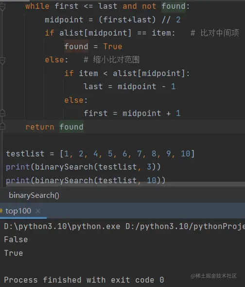 if alist[midpoint] == item: # 比对中间项