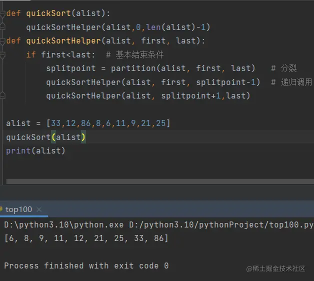 这个递归调用使用了列表切片,而切片操作的复杂度是O(k),这样会使整个算法的时间复杂度稍有增加