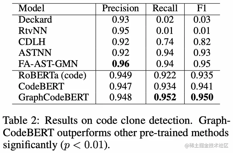 GraphCodeBERT基于Transformer架构,通过引入graph-guided masked attention来扩展它,以纳入代码结构。通过在CodeSearchNet数据集上预训练,GraphCodeBERT在四个下游任务上都达到了最先进的性能。进一步分析表明,代码结构和新引入的预训练任务可以改善GraphCodeBERT,并且模型对加入的数据流具有一致的偏好。