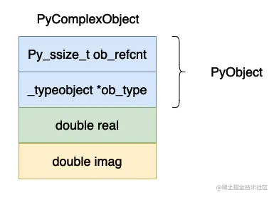 复数的数据在整个 cpython 虚拟机当中来说应该算是比较简单的了,除了一个 PyObject 头部之外就是实部和虚部了。