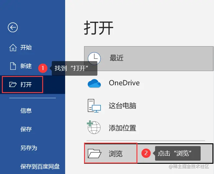 2.在菜单栏中选择【打开】,点击【浏览】;