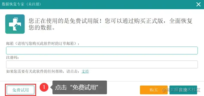 - 将数据蛙恢复专家下载并安装到电脑上,运行后点击 【免费试用】 ;