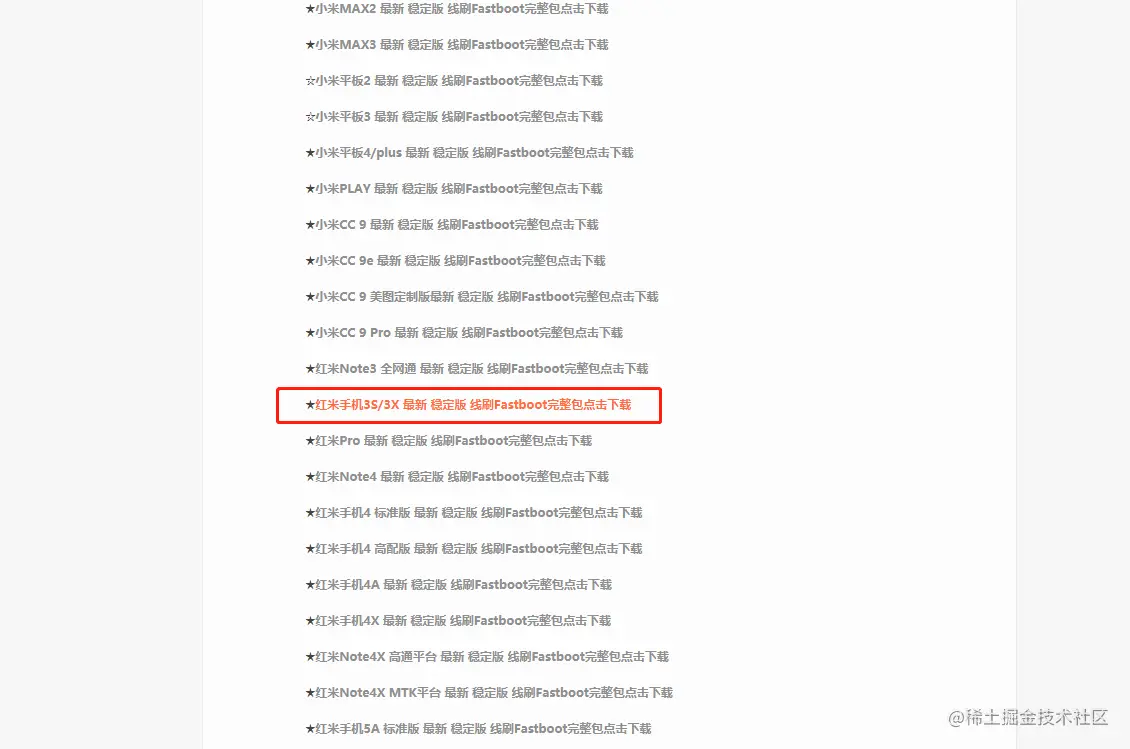 (1). 进入小米官方地址,选择与自己手机机型对应的ROM包,选择下载后放在电脑的某个磁盘,目录最好是不含中文 (2). 比如我自己的是红米Note 3S,一般大小在2G左右