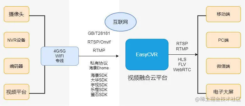 EasyCVR视频融合平台基于云边端一体化架构,具有强大的数据接入、处理及分发能力,平台支持海量视频汇聚管理,能在复杂的网络环境中,将分散的各类视频资源进行统一汇聚、整合、集中管理,实现视频资源的鉴权管理、按需调阅、全网分发、智能分析等。