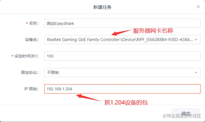 - EasyShark:通过选定网卡、限定协议以及IP限制,对指定的IP进行抓包。
