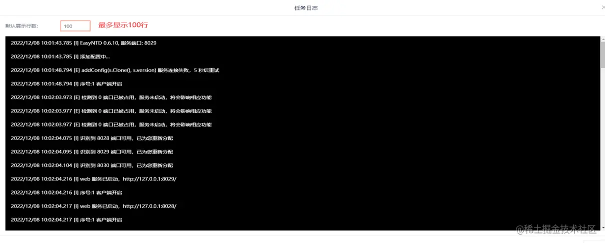 点击日志按钮,可查看日志。