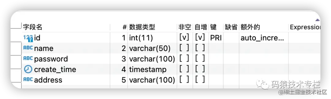我们填充上述文件,将建表字段加进去。