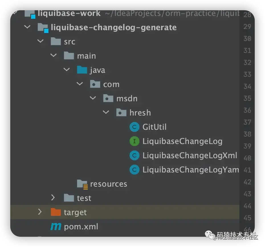 创建一个 maven 项目 liquibase-changelog-generate,本项目具备生成 xml 和 yaml 两种格式的 changelog,个人觉得 yaml 格式的 changelog 可读性更高。
