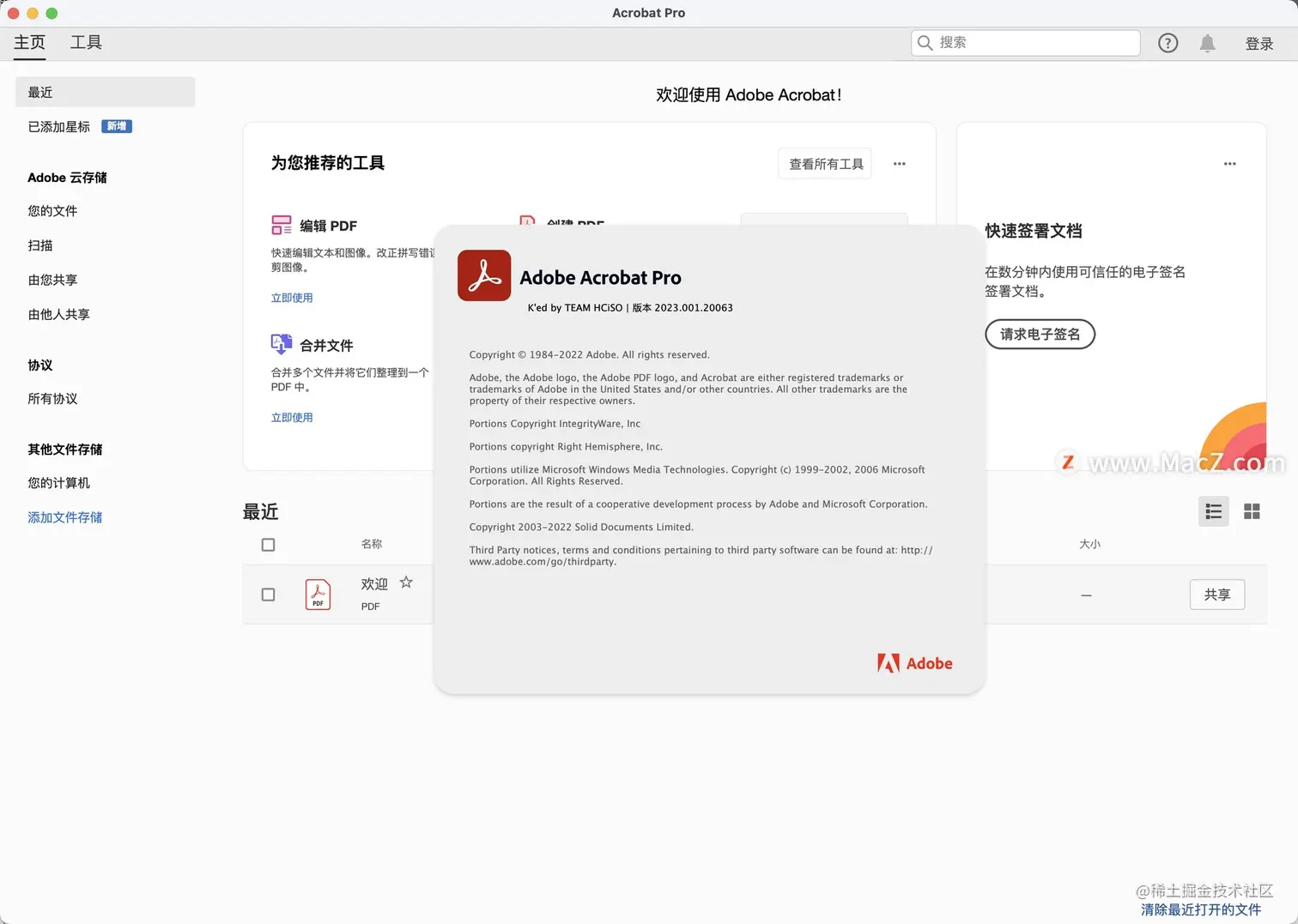 Acrobat DC 2023是一款功能强大的PDF文档处理软件。它可以让用户轻松地创建、编辑、转换、签署和共享PDF文件,同时还具备安全保护和OCR等高级功能。
