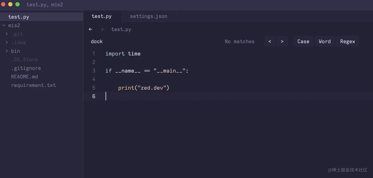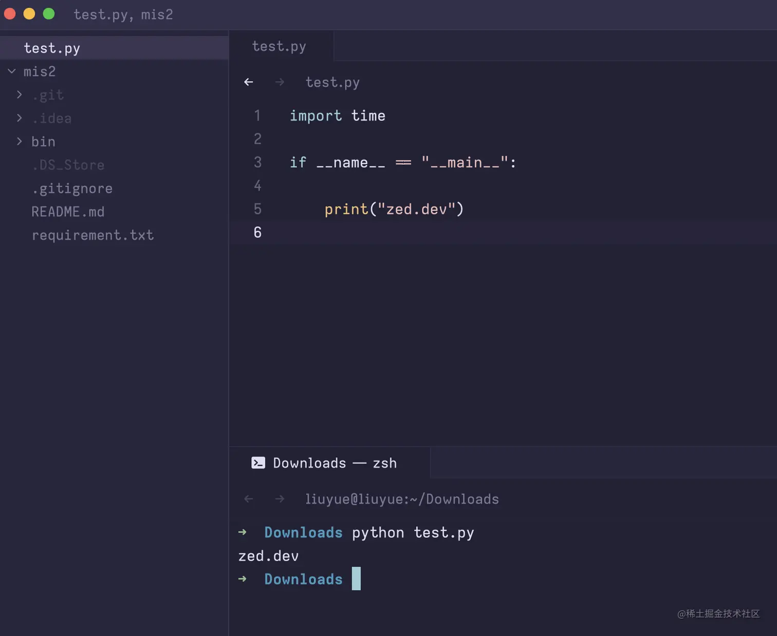 虽然Zed.dev还不支持插件,但内部集成了系统的终端,直接通过组合键 esc + shift 打开终端即可运行代码: