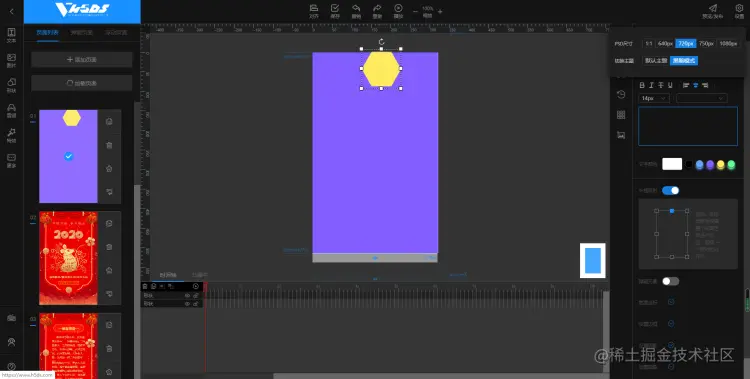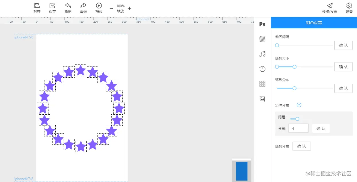 编辑器提供了一些批量操作的快捷方式,可以协助快速的制作H5,比如批量排版,批量设置动画等