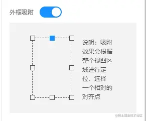 可以看到开启之后六边形定位方式变成了以可视区为准。比如我们在做底部导航的时候可以用吸附定位定位到最底部。