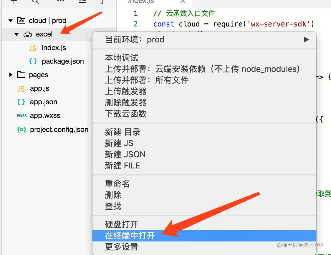 如果你还不知道如何新建云函数,可以翻看下我之前写的文章,也可以看我录的视频《5小时入门小程序云开发》