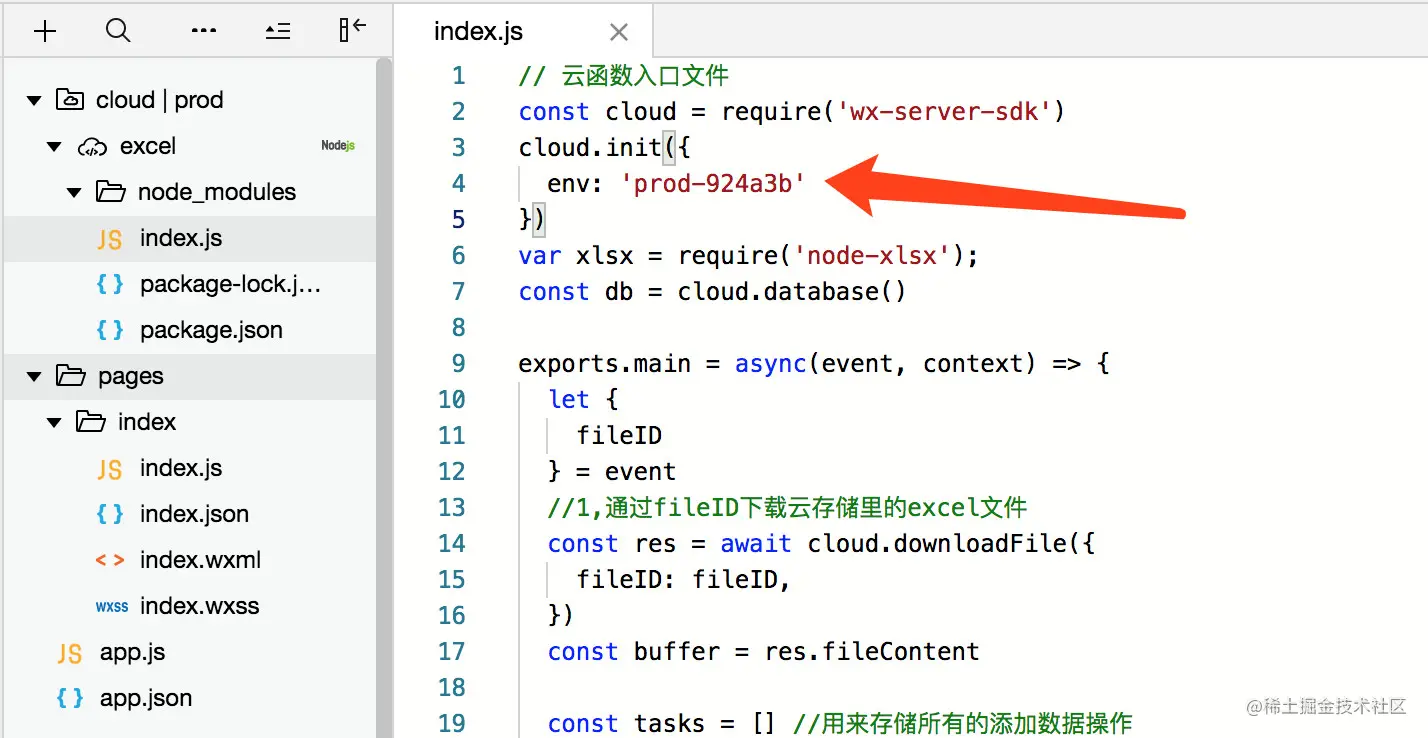 - 5,把第3步返回的fileid传递给excel云函数