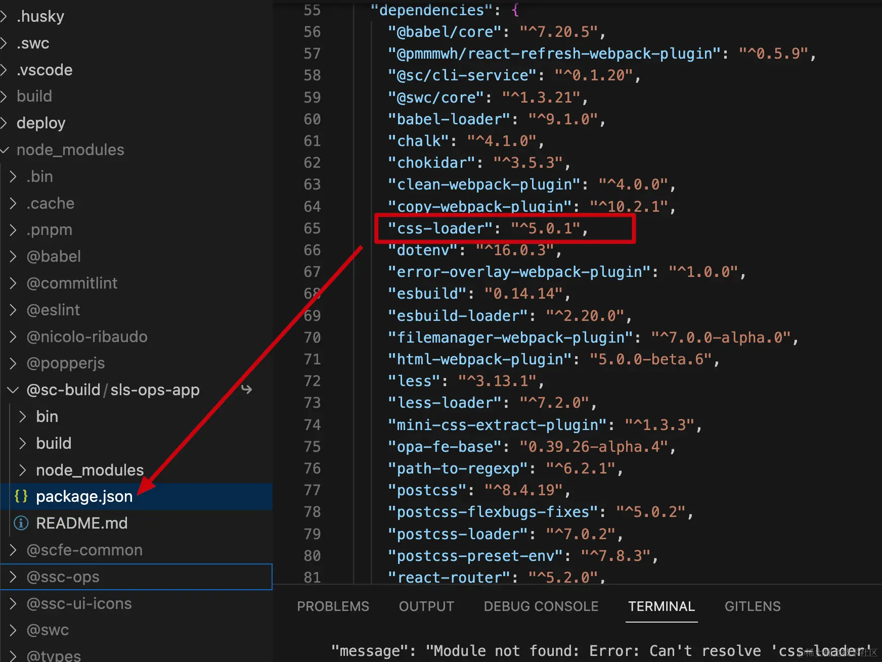 “Module not found: Error: Can't resolve 'css-loader' in 'xxx/Documents/project/biz-pro/ops-lfs”