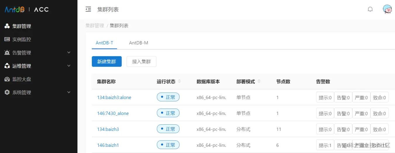 图5:AntDB Control Center(ACC)数据库智能运维管理平台