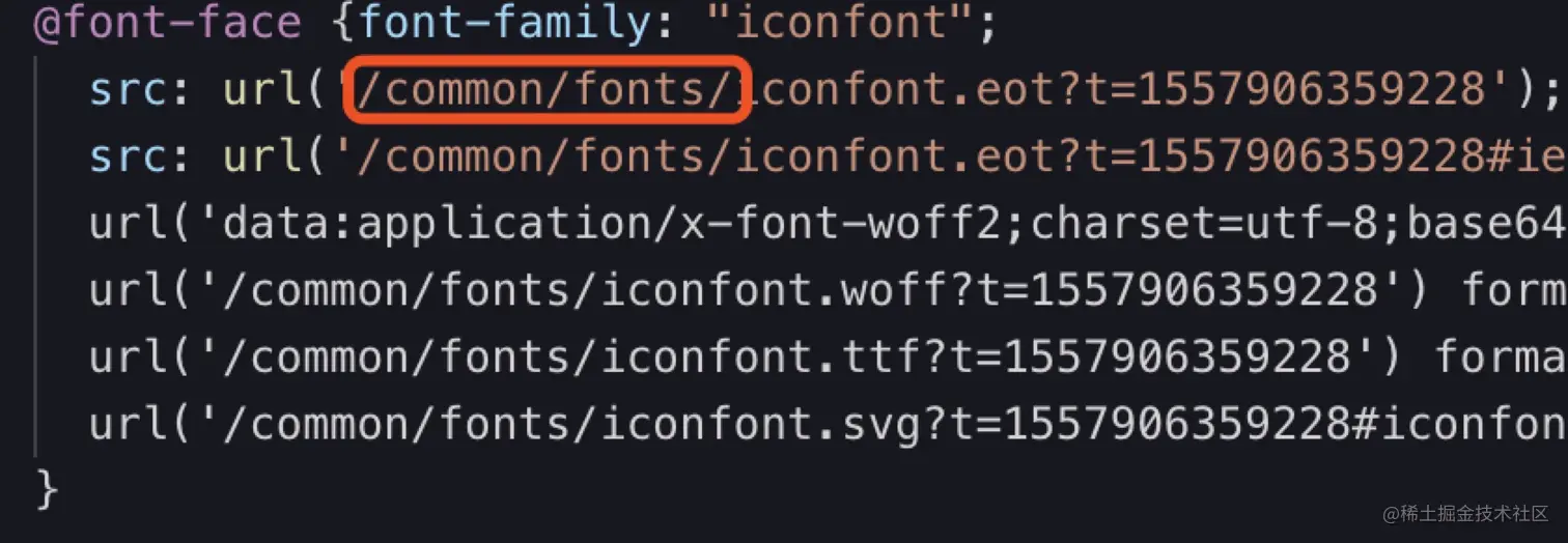在iconfont.acss中引入字体文件时使用的是相对路径,需要使用绝对路径。