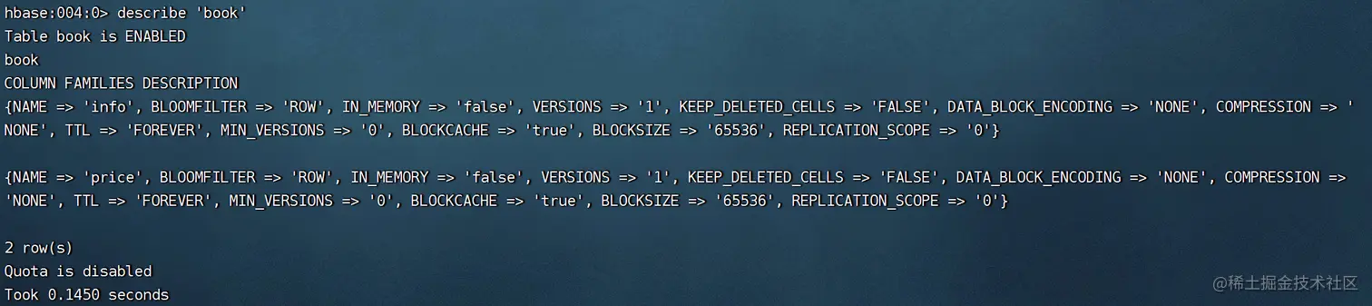 通过表名、行键等参数获取行或单元格数据:语法是 get 表名,行键,{条件}