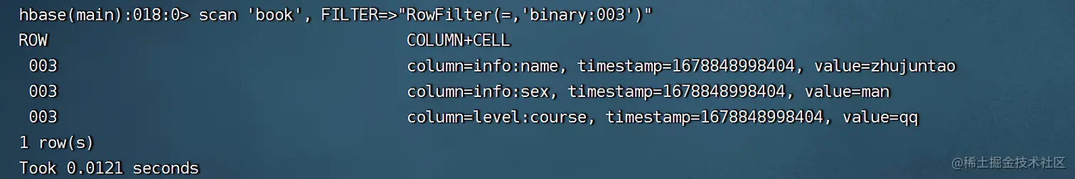 6.使用行键RowFilter过滤rowkey进行搜索(binary),即rowkey的精确查询