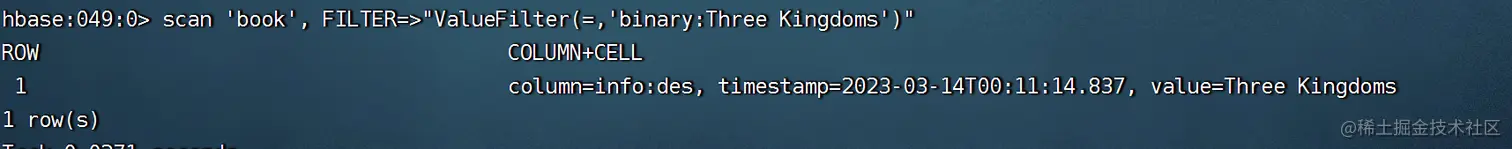 scan 'book', FILTER=>"ValueFilter(=,'binary:Three Kingdoms')"