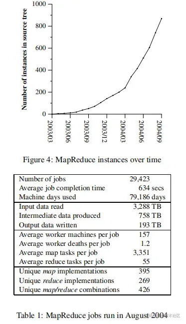 在每个任务结束的时候,MapReduce库统计计算资源的使用状况。在表1,我们列出了2004年8月份MapReduce运行的任务所占用的相关资源。