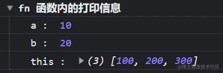 利用 apply 调用 fn 函数,此时 arr 就是 fn 函数内的 this 指向,第二个参数是一个数组